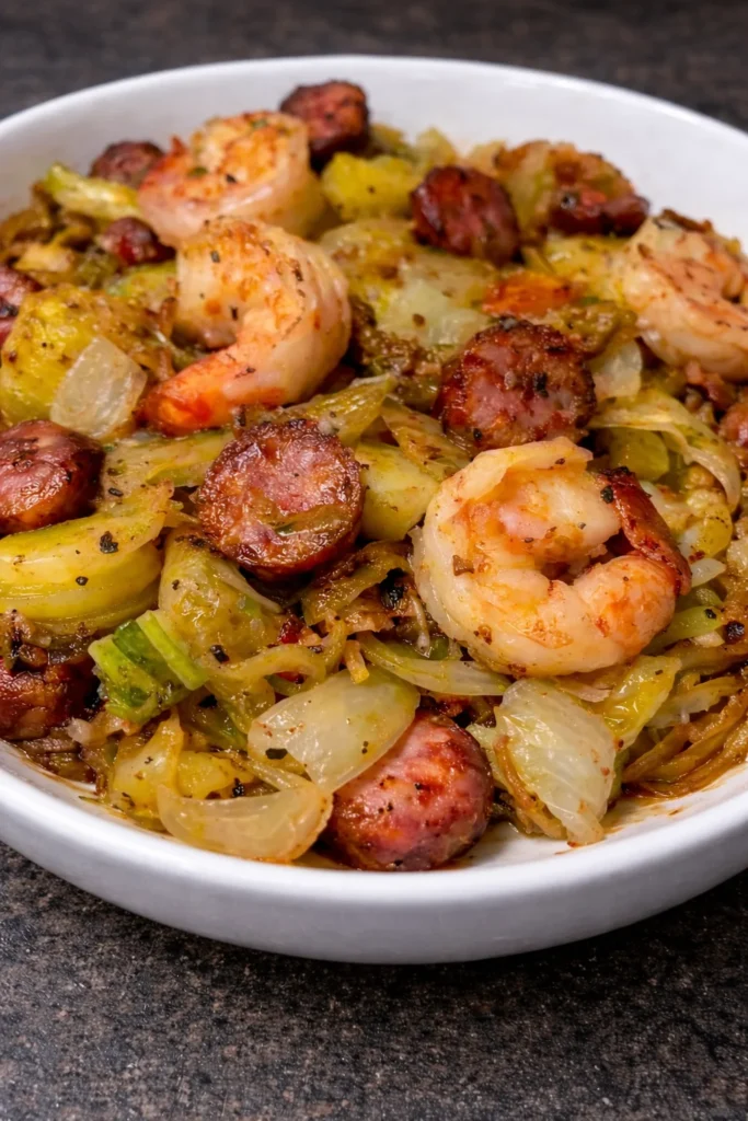 - Fried Cabbage with Shrimp & Smoked Sausage (One-Pan Cajun Style)