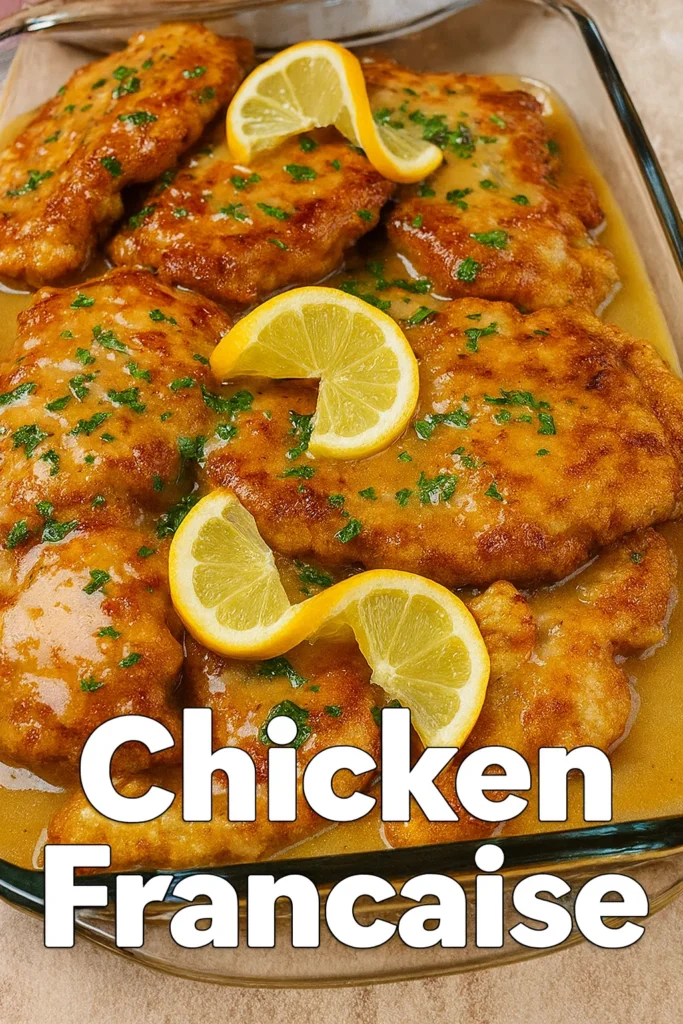 Chicken Francaise is a classic Italian-American dish featuring thinly pounded chicken cutlets lightly breaded, pan-fried until golden, and simmered in a bright, buttery lemon-wine sauce. Itโs rich, zesty, and restaurant-qualityโyet incredibly easy to make at home. Perfect for weeknight dinners, holidays, or serving guests with an impressive dish that takes under an hour.