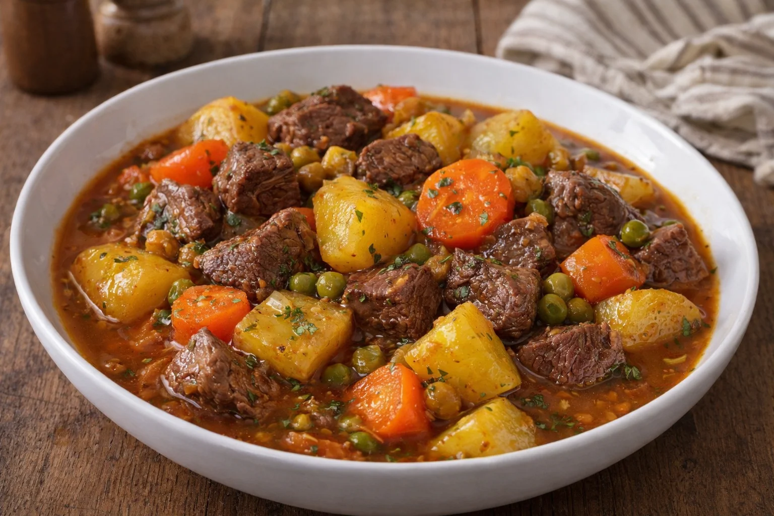 Classic Beef Stew is the ultimate comfort food—slow-simmered, hearty, and deeply satisfying. Tender chunks of beef are gently cooked in a rich brown gravy alongside potatoes, carrots, peas, and onions, creating a complete one-pot meal that warms you from the inside out. This homestyle stew is simple, rustic, and perfect for family dinners, cold evenings, or make-ahead meals.