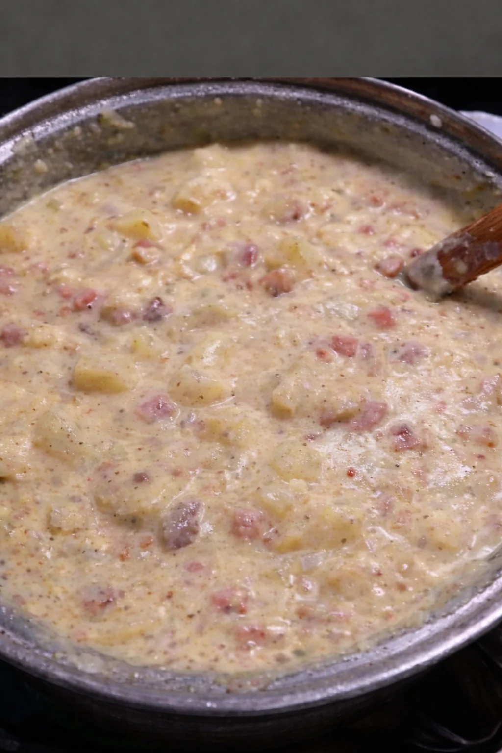 Absolutely. Simmer the ham bone in the broth first for deeper flavor, then remove it before adding potatoes.