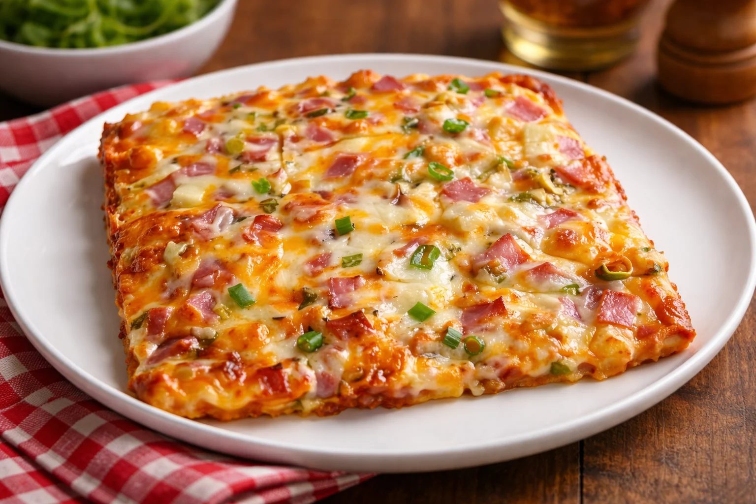 - Sprinkle cheese and green onions over the ham.