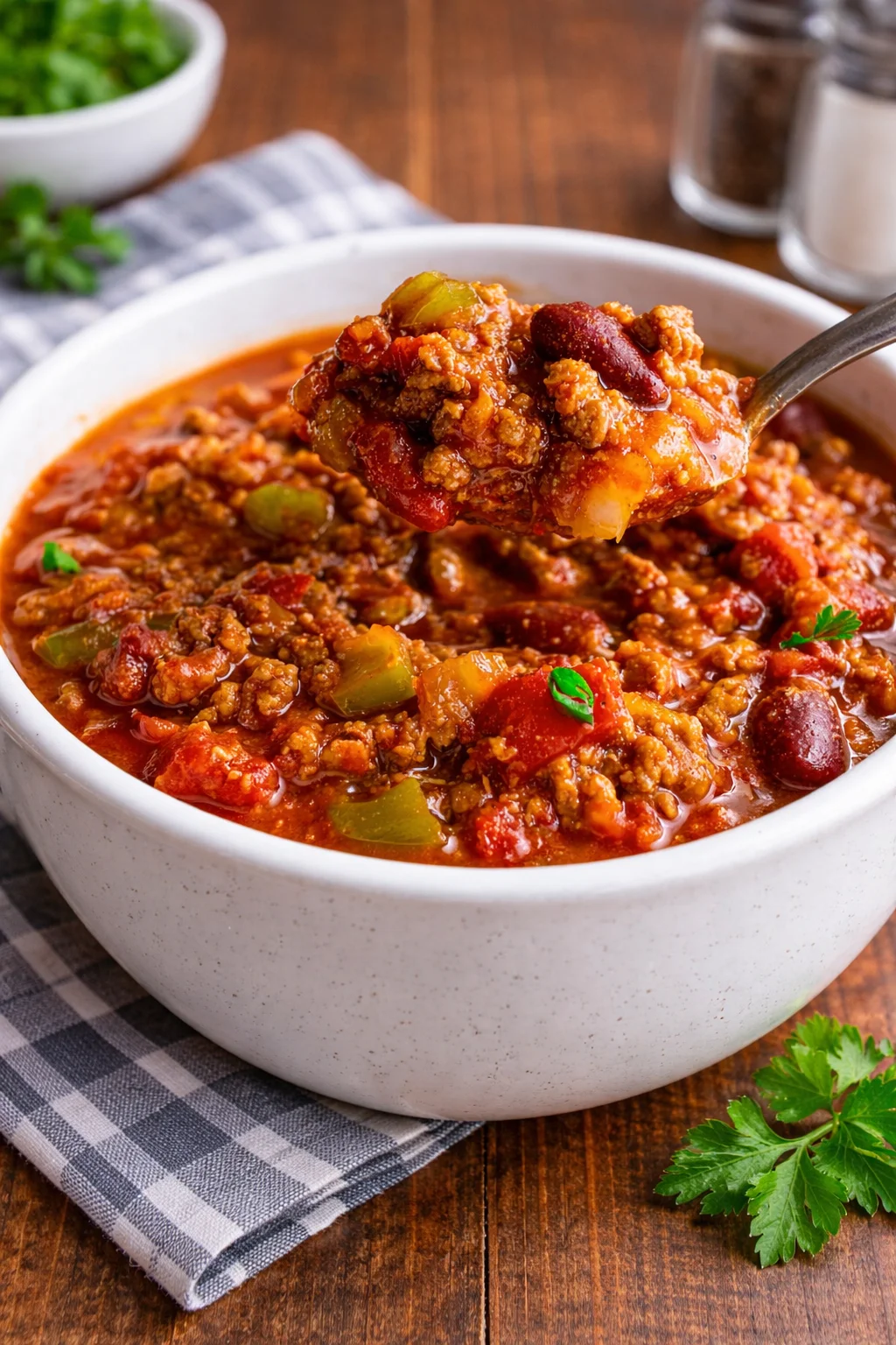 This hearty, comforting chili is a perfect balance of tender ground beef, kidney beans, diced vegetables, and rich tomato sauce, seasoned just right to give it that classic diner-style flavor. Perfect for cozy dinners, game days, or meal prep, it’s simple enough to make on the stovetop or in a slow cooker.